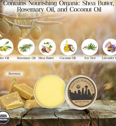 • USDA Certified Organic - Our balm is made of the highest quality organic shea butter, coconut oil, essential oils and organic beeswax. Don't buy a balm that leaves your beard feeling greasy! Leave in the balm all day to condition and soften your beard